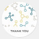 Beautiful science thank you stickers with a molecule pattern in blue and yellow colours. Designed by Patricia Alvarez.