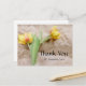 The card is held in a flower style in yellow, green. Yellow tulips on brown paper.