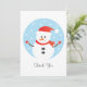 Thank You Christmas Snowman Snowflakes Red Card