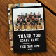 Thank you Coach Card Team Name Photo. Personalise with your coach name, team name and year. You can change any text on the card or erase it. A great card for a coach! Add a team photo.