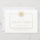 Show your gratitude by thanking your customers with this elegant contemporary business holiday card. This modern corporate holiday card design features a white solid background colour with a single snowflake in a gold hue and the words "All Our Gratitude This Holiday Season". An elegant simple flat invitation card template provides a placeholder for your company logo as well as a custom message to your customers on the back of the card! Select the "Customise It" option to change the background colour on the back or add a photo and for more customisation options.