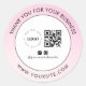 Say thank you for your purchase or business with this classic round sticker, featuring your custom company logo, QR code, and editable text for website or contact info. Designed in a soft pink gradient with a minimalist layout, it’s perfect for branded promotional items, marketing stickers, or product packaging. Just add your logo here and personalise with ease.