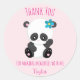 A cute panda wearing a blue flower, this sticker features a pastel pink background. Using pink text, "Thank You" is written at the top with the panda graphic, and "For making memories with me" underneath. Under the text is a place to customise your name. Purchase yours today!