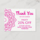 These personalised Thank You For Your Order Discount package inserts are great to show customer appreciation after a purchase of goods or service or during the holiday season. Coordinates with our pink mandala paper goods and accessories.