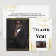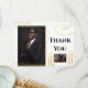 Simplistic, plain and elegant thank you cards suited to all occasions. The words, thank you, appear in a black calligraphy style flowing font that is stylish and elegant. There are faux gold geometric shapes and swirls scattered around the photo's and the edges giving a chic and upmarket look to the overall design. There are 2 photo templates for your special pictures on the front and templates on the back of the card for your personalised message of thanks to family or work colleagues. Ideal for corporate events; graduation thanks or any special occasion where you want to thank guests for joining you.