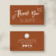 Modern and minimalist small business insert card featuring a hand lettered text that says "thank you" with doodle stars. You can add your logo and a simple message on the back along with your social media and website information. Terracotta background.