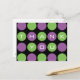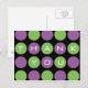 Contrasting green and purple dots align on a black background to spell out a note of thanks. Available with matching products.