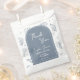 These Thank You Dusty Blue Seashells Doodles Favor Bags feature a soft dusty blue background filled with whimsical seashell, starfish, heart, and sparkle illustrations for a dreamy coastal look. Centered on the front is a dusty blue arch outlined with a thin white inner arch, beautifully framing your customizable text. Inside the arch, “Thank You” appears at the top, followed by space to add the bride’s name, “Bridal Shower,” a delicate seashell doodle, and the event date. Perfect for packaging treats, small gifts, party favors, or bridal shower goodies. All wording and colors are fully editable so you can match your seaside celebration perfectly.
