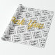 You can add a special touch to your business gifts with branded wrapping paper. You can replace the display logo with your business logo. It will appear as a pattern on the tissue paper. There's a faux (not foil) gold script that you can edit to create a custom message. (Shown: Thank You)