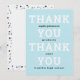 These 5" x 7" flat graduation thank you cards feature a textured arctic blue background with placeholder for graduate name, graduation year, in black and school with the words, "Thank You, Thank You," in ivory.