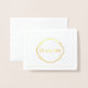 Thank You Note Card is shown in white with a sample name and border trim and accent print in real gold foil.