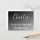 Show your best man how much you appreciated him on your big day with this "Thank you for being my Best Man" wedding thank you card. This customised thank you postcard features a black gradient design with his name written in large white cursive font. Underneath the name is "Thank You for Being My Best man" written in white standard print. Personalise your thank you postcard today!