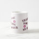 Treat your teacher to a unique coffee or tea mug at the end of the school year or during the holidays. This pink and purple mug features the words, "Thank You For Being My Teacher" in a pink and purple mosaic pattern along with two bright pink flowers. The solid background colour is pale pink and can be customised if you desire.