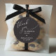 Modern Wedding minimalist "Thank You for celebrating with us" Cookies and Gifts Round Sticker, in romantic script, little heart, with bride and groom signature and wedding date, charcoal grey theme wedding favors label.