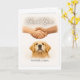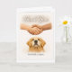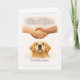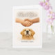 The handshake represents the collective effort of puppy raisers, trainers, instructors, and guide dog school staff, while the Golden Retriever’s calm, attentive expression centers the card on the dog who makes independence possible. The interior is blank, allowing space for a personal message from the handler or their family.