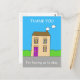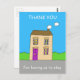 A funky, colourful cartoon house and the words 'Thank you for having us to stay'.
