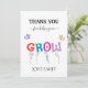 A line art with elegant writing for teacher appreciation thank you card that says "thank you for helping me grow" with customisable student name and teacher name.