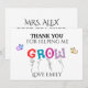 A line art with elegant writing for teacher appreciation thank you card that says "thank you for helping me grow" with customisable student name and teacher name.