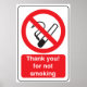 Thank You for Not Smoking Sign Poster