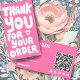 Cute design with handmade lettering. Change the text, font and colours of this customisable discount/thank you/business card. Customise the social media icons to suit your needs. Add your own link to the QR Code. Hand made by me for you. Check my shop for more business card designs!