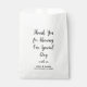 Express your heartfelt gratitude with our elegant wedding favour bags, perfect for saying "Thank You for Sharing Our Special Day". These customisable paper bags are ideal for holding small treats, cookies, tea bags, or mini coffee mugs — a thoughtful keepsake your guests will cherish. Choose from premium paper options and personalise with your names, wedding date, or a romantic design to match your theme. Whether you're hosting a rustic barn wedding, a beachside ceremony, or a modern city celebration, these favour bags add a polished, personal touch that elevates your décor and shows your appreciation. Durable, stylish, and ready to ship, they’re the perfect way to say thanks in a meaningful way.