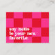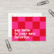 Simple small business thank you insert card featuring a retro font on the front that says "say hello to your new favourite". Modern trendy chequered chequerboard pattern in pink and red. Add your business name, website information and a simple message on the back along with your social media logos and handle. A great way to remind your customers why they love your brand. Part of a collection. ©Marisu Valencia
