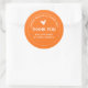 Express your gratitude with this charming thank-you sticker, featuring the phrase 'Thank you for supporting my small business' in a casual, friendly Chelsea Market font. Set on a pumpkin orange background, the text is accented by a delicate heart illustration and a subtle ring of dotted details, giving it a warm and welcoming feel. Perfect for adding a personal touch to packages, this sticker is a beautiful way to show appreciation for your customers' support.
