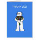 A large, cartoon white cat holding a beautiful bunch of flowers, set against a bright blue background. The words 'Thank you' accompany the image.