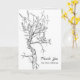 A thank you for the referral greeting card decorated with a sagebrush branch sketched with black pen and ink on a white background. The inside is coloured with a soft grey and a darker shade of grey text. You can edit the text to fit your needs. Sagebrush bushes have clusters of small leaves, twisting twigs and branches with the top surface that peels away which gives an interesting texture to the plant and drawing. It is the state flower of Nevada and according to Audubon, over one hundred bird species rely on sagebrush country for their habitat.