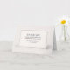 This 7×5 inch folded card (top fold) features a timeless, typography-forward layout on the front, centered within generous white space. A thin double-line border in navy and muted red frames the message:
