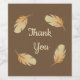 Express your appreciation easily and beautifully with this general appreciation wine bottle label. Four feathers curve their way around the label and surround the words "thank you". Each feather features colours of yellow and light brown against a dark brown background. The words "thank you" in the centre can be customised to suit your needs.