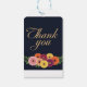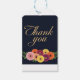 A beautifully handwritten "Thank You" in bold, flowing cursive script occupies the centre of the image. Below the text, a delicate arrangement of elegant flowers in soft pastel hues frames the message, creating a visually appealing and heartfelt composition.