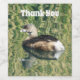 This unique appreciation wine bottle label features a cute little grebe floating on the calm water. This animal's fluffy back feathers stand out against the smooth water surface. Green grasses and reeds as well as the adorable bird are reflected in the water in this nature photo. "Thank You" is featured above the small bird and can be customised easily if you desire.