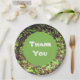 Say thank you to your employees or customers with these autumn-themed paper plates featuring bright green and brown leaves laying on the ground. This fall photo provides neutral colours for a centre circle in matching green along with "Thank You" which can easily be customised if you desire.