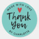 A personalised cute "made with love Thank You" sticker on a teal blue coloured background. Make it yours by adding your own name. A pretty finishing touch for your packages. Perfect to thank customers in your homemade crafting business. Designed for you by Blackberry Boulevard.