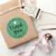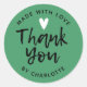 A personalised green 3 inch "made with love, thank you" sticker on a pink coloured background. Make it yours by adding your own name. A pretty finishing touch for all of your handmade and homemade gifts. Comes in a 1 1/2 inch size as well. Perfect to thank customers in your homemade crafting business. Designed for you by Blackberry Boulevard.
