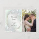 PHOTO THANK YOU CARD | Add your Photo - A shimmery honeydew green luminescent background with luminous rose leaves , eucalyptus leaves, baby's breath and sparkly twinkles. Reverse is a complimentary coordinated colour. This design looks especially nice on the Pearl Shimmer paper choice. Customise text, font style, colour and size. We created this template is to make it easy for you to personalise with your own information. This is part of a complete Wedding Stationery Suite with matching wedding, baby shower and other event stationery. Original Artwork © by WhimsicalArtwork™.