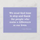 Thank You Inspirational Quote Postcard featuring the words of John F. Kennedy. "We must find time to stop and thank the people who make a difference in our lives." Say thanks.