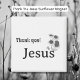 A modern black and white design featuring a simple line drawing illustration of sunflowers, with the text 'Thank you, Jesus.' Retro-style typography.