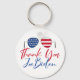 Thank You Joe Biden keychain written in red and blue cursive letters under a cool pair of sunglasses with the American flag in the shades. Democrats show your thanks to our president for doing so much for our country.