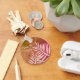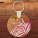 This thank you keychain features pale pink plant leaf silhouettes that reach up from the bottom towards the words "thank you" written against a marbled pink and orange background. "Thank you" can easily and quickly be customised to suit your needs.