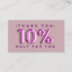 Thank You Logo QRCODE 10%OFF Discount Code Pink Business Card