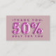 Thank You Logo QRCODE 50%OFF Discount Code Pink Business Card
