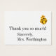 You have a little treat here! This art is a combination of Gina Jane's designs for which I have EXCLUSIVE RIGHTS to use on Zazzle when even her / that of her company CU is legally forbidden. Enjoy! As a teacher, when I taught elementary school art especially, I would easily get over 100 Christmas presents yearly, and I spent most of my Christmas writing 100 thank yous ! Some said they don't give thank you cards; yet, the kids look forward to them and deserve them, so ... this would be a sweet solution. I created it on the chubby BUSINESS CARD. There are 100 in the pack. There's enough room to add the student's / anyone's name on the back side. This will save you money and time. This will acknowledge how sweet gift givers are also. I always want a thank you. I do ! When I'm thanked, I remember it. When I'm not, I remember to not give a gift next time ... ; ) This is a template, so you can certainly change everything on the back side and what you want the front to say. THANK YOU !!! You know, it doesn't even have to be a thank you card. It can be whatever you want it to be ! Thank YOU, Sharon Rhea Ford, NBCT-Art (www.zazzle.com/sharonrhea*) Please tell your friends and come to me directly and often. I appreciate it! Oh, I offer it on white stock here, but it looks great on Pearl also. I use indestructible for my business cards; yet, don't for these since You might want to personalise it with the gift givers' names.