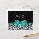 Personalise this trendy black and white leopard print pattern thank you postcard, with a stylish Emerald Green ribbon tied into a cute girly bow, by adding a custom message to customisable text area. This modern style post card is part of the Animal Print Fall Fashion Collection. Flat printed image, not actual ribbon.