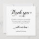 Add four photos and monogrammed initial to the front of elegant thank you card with wreath and linen effect background. On the back, "Thank you" is written in an elegant swirly black script above a personal message to your wedding guests which can be personalised. Also, "with our love" is in same script; add your names below.