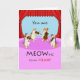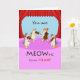 Thank you paper greeting card with a music theme of a cat string quartet. Red curtains with a violet coloured stage and blue background around the cats. You are MEOWsic to my Heart, text on the cover. Cats thanks to Naobim/Pixabay. Art, image, and verse copyright © Shoaff Ballanger Studios.
