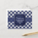 These "Thank You" postcards are perfect for any event. They are suitable for all occasions including your birthday party, anniversary events, showers and more. It is a seamless, navy blue and white gingham checks pattern in the background. The front has the text, "Thank you", and your message, printed on a navy blue, ticket-shaped plaque. Change the text to match your event. The back, left is blank for your hand-written message.