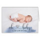 Modern, original and cute OH BABY baby shower, baby sprinkle, newborn thank you cards. Script calligraphy 'oh baby' with faux blue gold foil brush stroke & diamond heart in middle . Add name (or delete). Edit text inside for special note. Personalise them with your baby's picture / photo!