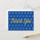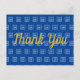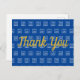 Large display text reads 'Thank You' in faux (not foil) gold script. (If desired, you can edit the text to show a custom message.) You can replace the display image with your company's logo. It will appear in a pattern on a deep blue postcard. Deep blue is hex #004095.